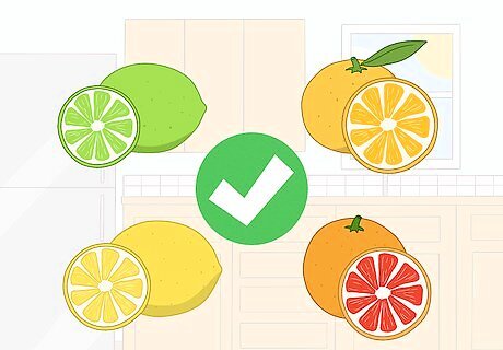 Eat citrus fruits that are low in sugar. Citrus fruits, in particular, are high in vitamin C, which may help to boost your immunity and decrease flu symptoms. Vegetables such as broccoli, potatoes, Brussels sprouts and winter squash are rich in vitamin C. Other fruits like grapes, mangoes, and bananas can contain a high degree of sugar, which can suppress immunity. Citrus fruits that are particularly low in sugar include peppers, tomatoes, and avocados.