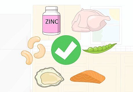 Decrease the length of the flu with zinc-rich foods. Many people believe that increasing their intake of zinc can drastically limit the symptoms and length of the flu. Zinc is an important mineral in the healthy function of your immune system. Some people take zinc supplements when they get the flu, but you can get it from turkey, beans, wild salmon, oysters, whole grains, and nuts.