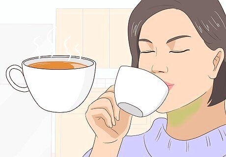 Sip on some hot tea. Drinking hot tea can soothe a sore throat or cough while keeping you hydrated. Tea also has antioxidants and contains quercetin, which boosts immunity. Add a slice of lemon to your tea for a boost of vitamin C. Ginger has strong anti-inflammatory powers. Sipping on ginger tea is a good way to take advantage of ginger's benefits. Ginseng tea can soothe upper respiratory infections, and may drastically reduce the length of flu symptoms. Green tea has flavonoids and catechins, which are antioxidants. Catechins are antiviral and antibacterial, and can help fight off the flu virus.