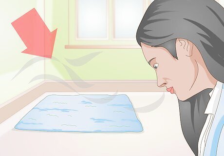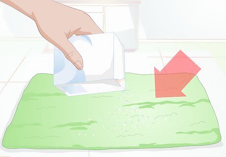 Use baking soda. Baking soda is widely known for its odor neutralizing properties. If you want to get rid of some of the dog smell you’re your home, just sprinkle a little baking soda on the affected areas. Cover the fabric with a light dusting of baking soda and let it sit for 15-30 minutes. After the time is up, vacuum it up. Baking soda works well for getting rid of odors in artificial turf pee pads. For extra tough odors, you can leave the baking soda on the carper overnight. This will help absorb even more of the smell. Alternatively, you could create your own all-purpose cleaning solution out of baking soda. Simply add two tablespoons of baking soda with 3 cups of hot water in a spray bottle. Shake it up and spray on the fabric or surface emitting the odor. Wipe the surface clean with a damp cloth.