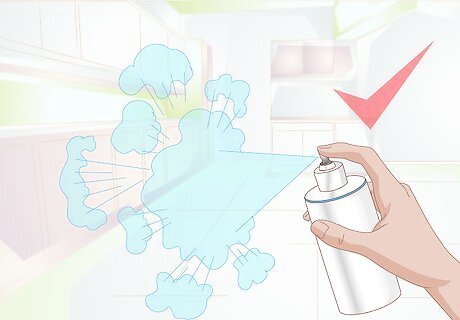 Spray some air freshener. Use an air freshener to cover up any sources of odor you may not have been able to locate. After you’ve cleaned all your carpet and furniture that could be causing the dog smell, spray some air freshener liberally around the places your dog hangs out the most. You can even buy air fresheners that are specially formulated to cover up pet odor. Be cautious about overusing certain air fresheners as some of them may contain chemicals that are not good for animals and humans to constantly ingest.