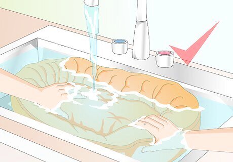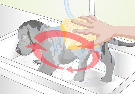 Wash dog toys. If your dog regularly plays with some toys, these toys can capture built up residue that produces strong pet odors over time. Remember to wash the dog toys at regular intervals (once every week or two, as needed), especially once they start to smell more noticeably. Fabric toys can be washed in the washing machine on the delicate setting. But be sure to wash any plastic toys by hand.