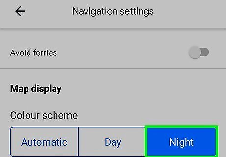 Navigate to the “Map display” section. Select the NIGHT option, under the “Colour scheme” option to enable the dark mode feature.