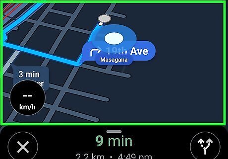 Enjoy the navigation with the dark screen. Tap the ≡ button and select Start driving to view the Google Maps navigation. You can turn off this feature by navigating to the same settings and hitting “Day” or “Automatic” instead.