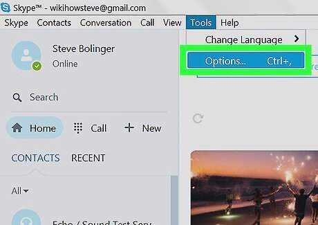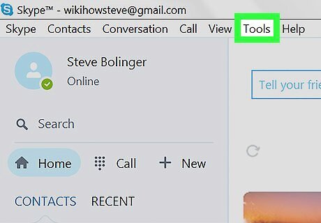Click the Tools tab. This button is located on a tabs bar in the upper-left corner of your Skype window. It will open a drop-down menu.