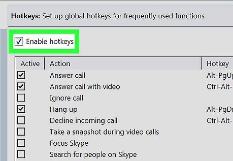 Check the Enable hotkeys box. This box is located at the top of the Hotkeys settings. When this option is enabled, you can use keyboard shortcuts in your Skype calls.