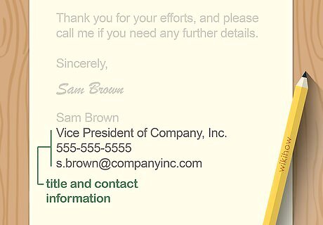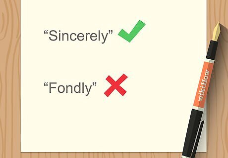Use “Sincerely” or “Yours truly” for your closing. “Sincerely” and “Yours truly” are professional, tried and true closings. Less formal closings, such as “Best regards” or “Warm regards,” are suitable if you’re on a first-name basis with the letter’s recipient. Avoid ending a business letter with informal closings, such as “Fondly,” “Cheers,” or “Ciao.”
