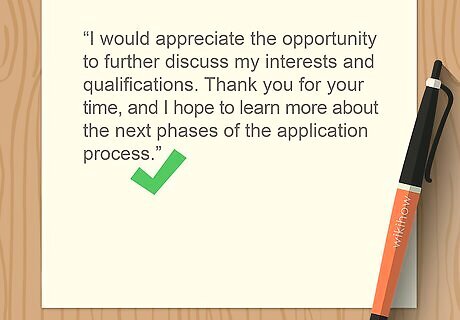 Restate your letter’s purpose concisely in the closing paragraph. Bring your letter’s body to a close with a quick summary of your main point. Keep it brief; the final paragraph only needs to be about 1 to 3 lines. You don’t need to write a long, step-by-step conclusion, and you shouldn't bring up any topics you haven't already covered in the letter. For instance, if you’re writing a cover letter for a job application, briefly restate your interest in the position: “I would appreciate the opportunity to further discuss my interests and qualifications. Thank you for your time, and I hope to learn more about the next phases of the application process.”