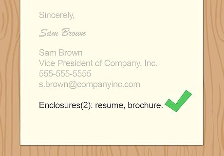 Print the letter and seal it in an envelope if you’re mailing it. Add your handwritten signature after printing the letter. Type or write the return and recipient’s addresses on an envelope, then mail the letter according to your nation’s postal standards. Be sure to include any enclosed documents in the envelope.