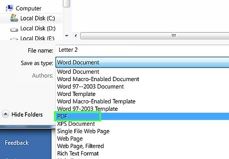 Save the letter as a PDF if you’re sending it digitally. Save your letter as a word document (such as .doc or .docx) in case you need to make future edits. Additionally, if you’re emailing the letter or uploading it onto a website, find the “Save as PDF” option in your word processing program’s “Save as,” “Publish,” or “Download as” dropdown menu. A PDF is more stable than a word document and can help ensure your reader will receive a properly formatted letter.