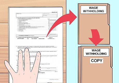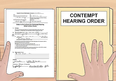 Fill out an order. Whoever wins the hearing is often tasked with filling out the “order,” which is what the judge signs. You have to accurately summarize what the judge has found. For example, the judge might fine your ex-spouse a sum of money or jail them for deliberately refusing to pay alimony. After filling out the order, you present it to the judge for their signature. Make sure that you get a copy of the signed order for your records.