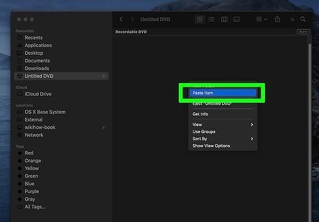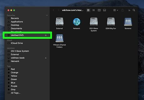Select your DVD. In the lower-left side of the Finder window, click your DVD's icon. This will open its folder. You can also double-click the DVD's disc icon on the desktop to do this.
