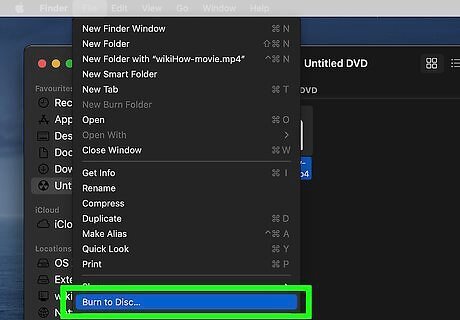 Click Burn [name] to Disc…. You'll find this option in the File drop-down menu.