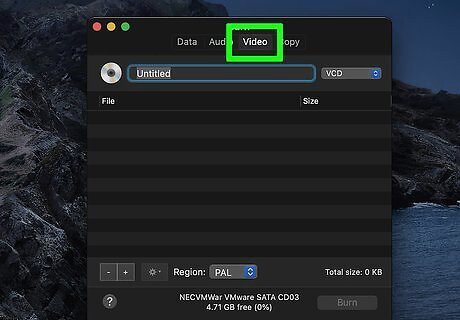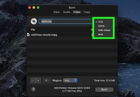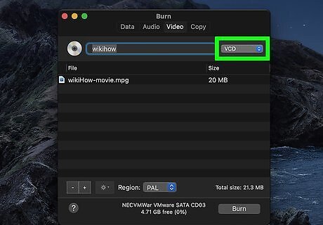 Click the file type drop-down box. This option is in the upper-right side of the Burn window.
