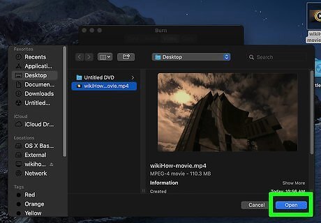 Click Open. It's in the bottom-right corner of the Finder window. Doing so copies the video into the Burn window.