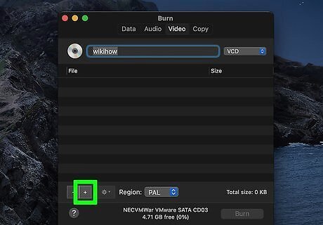 Click +. This icon is in the lower-left corner of the Burn window. A Finder window will open.