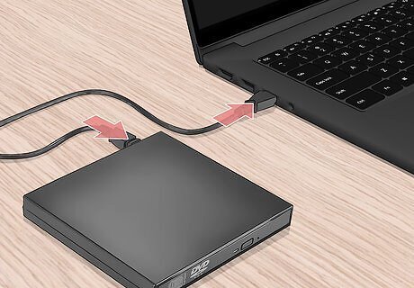 Attach an external DVD drive to your Mac. Since most Macs no longer have built-in DVD drives, you'll need to buy and use a USB DVD drive. Plug the USB DVD drive's connector cable into one of your Mac's USB ports. You can buy a USB drive called the "Apple USB SuperDrive" from Apple for less than $90. If you buy a DVD drive that has a USB 3.0 cable, you may also need a USB 3.0 to USB-C adapter for your computer.