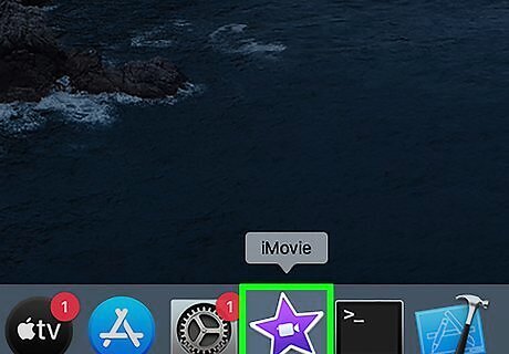 Open iMovie. This app's icon resembles a movie camera icon on a purple background.