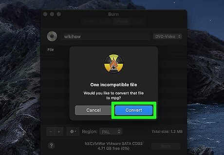 Click Convert if possible. If you see a Convert option appear after selecting the file type, click it, then follow any on-screen prompts. This will ensure that your DVD file is playable on the DVD.