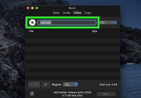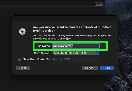 Enter a name for the DVD. In the "Disc Name" text field, type in the name that you want to use for your DVD.