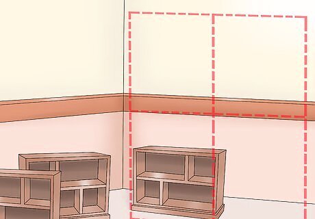 Assemble your own built-in bookcases. Floor-to-ceiling length bookshelves may seem expensive, but you can replicate the effect without purchasing high-end custom furniture. Measure your wall. Instead of building one giant bookcase, purchase four identical smaller bookcases that will fit in that space. Place two side by side for the base, and stack the other two on top. Be sure to bolt all four bookcases to the wall for stability.