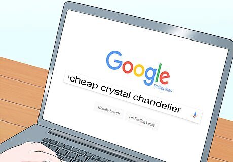 Search online for less expensive replicas. If there is a more expensive piece that you have your eye on, you might be able to find a cheaper replica online. Search for words that are associated with the original piece. For example, you might type, “cheap crystal chandelier” to see what pops up.