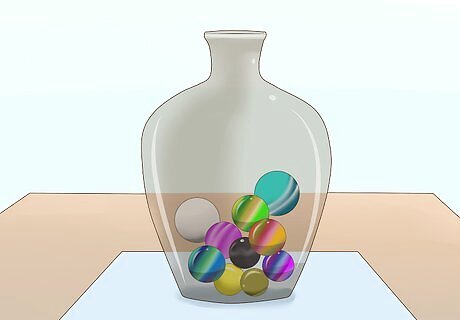 Fill a vase to make a centerpiece. Vases are easy to find, and they can be relatively inexpensive. To help jazz up an empty vase, you can fill it with some small items. This will add a touch of character to your décor without costing a ton of money. Some things you can fill it with include: Potpourri Shells Pieces of coral Marbles Buttons Sticks Wine corks
