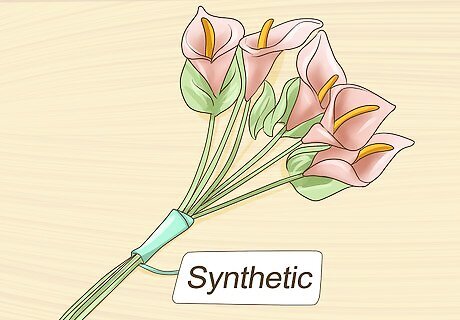 Use fake flowers instead of real. Fresh flowers are beautiful, but they can become costly. Instead, look for convincing fake flowers. Put together your own centerpiece, and arrange them in an inexpensive vase or decorative box. You have an easy, reusable centerpiece. Go for flowers that look as close to real as possible. You might even be able to find ones that also feel soft and natural. Your guests probably will not know the difference. You can swap out flowers for each season and event, reusing the same flowers every year. Friends probably will not notice, but it will make it seem as though you are constantly updating your centerpiece. Artificial flowers can easily become dusty. If so they do not look luxurious. Also, this can be problematic for allergy sufferers and asthmatics
