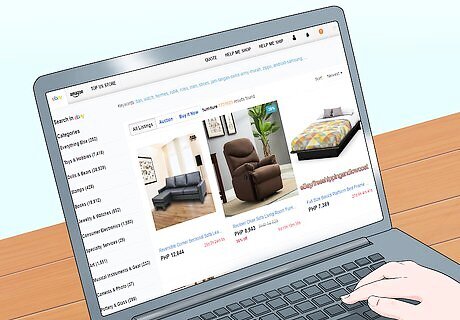 Shop online. Websites like eBay, Craigslist, and Gumtree allow people to sell their old furniture and decorative items. Search through these sites to see if you can snag a deal. It may take a little while to find the perfect deal, but you may be able to score a truly expensive piece for very little money.