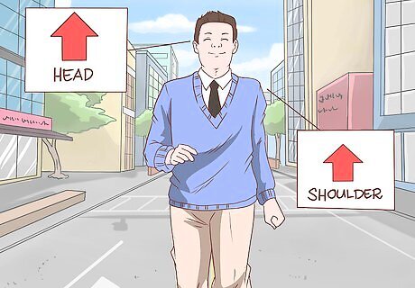Walk with your head held high. Just as posture can affect you when you're sitting, it can also affect you while standing and walking. If you feel bad about your body, it may show in the way you carry yourself. Demonstrate confidence by walking with your shoulders back and your chin tilted upward. Doing this will help you to feel better about yourself. Psychologist Amy Cuddy describes 'power poses' that you can use to increase confidence. These positions include standing in a wide stance with your hands gaped at your sides. The "Wonder Woman" pose is characterized by placing your hands on your hips with your chest poked out. Taking on such a pose increases your own self-perception of being capable and in charge.