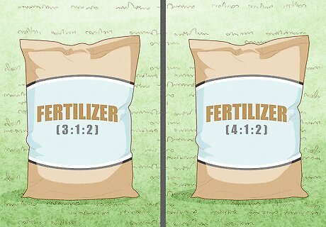 Select a fertilizer that meets your lawn's needs. Now that you know your type of grass and your soil pH, choose a fertilizer that provides the necessary nutrients. Fertilizers are always labeled with three distinct numbers, representing these nutrients in this order: nitrogen (N) for leaf growth, phosphorous (P) for development of roots, flowers, seeds & fruit, and potassium (K) for stem growth, water movement in plant, flowering & fruiting. Most lawns do well with a 3:1:2 or 4:1:2 fertilizer. If you used a soil testing lab, the report may recommend that you look for a fertilizer or soil addition with extra nutrients. Possibilities include the three macronutrients calcium (Ca), magnesium (Mg) and sulphur (S), as well as the micronutrients copper (Cu), iron (Fe), manganese, (Mn), molybdenum (Mo), zinc (Zn), boron (B). Occasionally specialized plants or soil conditions will require silicon (Si), cobalt (Co), vanadium (V), or other rare mineral catalysts. EXPERT TIP Jeremy Yamaguchi Jeremy Yamaguchi Lawn Care Specialist Jeremy Yamaguchi is a Lawn Care Specialist and the Founder/CEO of Lawn Love, a digital marketplace for lawn care and gardening services. Jeremy provides instant satellite quotes and can coordinate service from a smartphone or web browser. The company has raised funding from notable investors like Y Combinator, Joe Montana, Alexis Ohanian, Barbara Corcoran and others. Jeremy Yamaguchi Jeremy Yamaguchi Lawn Care Specialist Know why you want to fertilize your lawn. Do you want more growth? Do you need to replenish missing nutrients? Your answer helps guide you in what type of fertilizer to purchase.