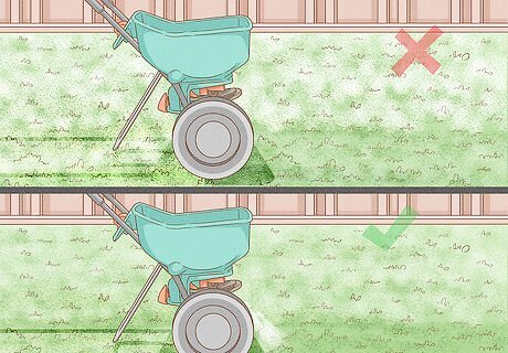 Prepare the spreader. Open and close your spreader while it is empty to ensure that it works properly. Fill the spreader with the appropriate fertilizer for the time of year and needs of your lawn. Check the packaging to see the recommended amount. Adjust the spreader so the release of fertilizer matches the recommended dosage on the fertilizer bag.