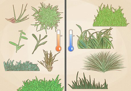 Know your grass. The type of grass you have will determine what type of fertilizer you need to use, and how often you need to fertilize. Some regions have primarily warm season grasses, while others have primarily cool season grasses. If you don't know what type of grass is growing in your yard, ask your neighbors who have similar grass, or take a sample to your local garden center. Warm season grasses grow primarily in the southern regions of the US. They include St. Augustine, Bahia, Carpetgrass, Centipede, Bermuda, Zoysia, and Buffalo, among others. These grasses turn brown in the fall after the first frost of the year. Cool season grasses grow primarily in the northern regions of the US. They include Fine Fescue, Bluegrass, bentgrass, and ryegrass. Cool season grasses are more cold-tolerant, but will still fade to a light tan or brown color during the coldest winter days in most climates. Both warm and cool season grasses can grow in the middle regions of the US.