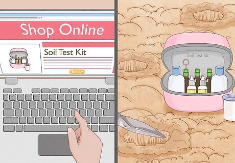 Do a pH soil test. This measures the alkalinity or acidity of the soil, and helps to determine what pH your fertilizer should have. You can buy pH testing kits for soil at garden stores or online. Follow the instructions on your kit to determine your soil's pH. If your soil has high acidity or alkalinity, you'll need to pick out a fertilizer that will balance things out for optimal growth. Take samples from multiple locations and various depths, up to 10 to 12 inches (25–30cm). Record all the results for later reference. For more detailed information about your lawn's nutrients, send the soil samples into a soil testing lab or your local agriculture extension. If the pH is too low or too high, the nutrients won't be available to the lawn. If the soil pH is too low, you may need to add limestone to raise the value.