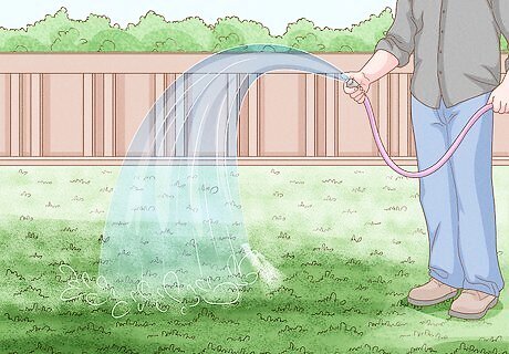 Water your lawn. This helps the soil absorb the fertilizer so your lawn will begin seeing its benefits right away.