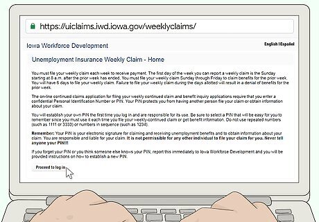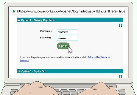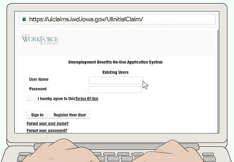 Register for work. After you file your initial claim for benefits, go to https://www.iowaworks.gov/vosnet/Default.aspx and set up an account as a job seeker. Answer all questions, including providing your Social Security number. Then, upload or create an active résumé and set it so that employers can review it online. There are other options for your account and things you can do on the site. However, these are the minimum things you must do to have a valid work registration for receiving unemployment benefits. If you fail to complete the online application for work registration, your application will be denied and you won't be eligible for any benefits. If you don't have reliable internet access, you can use one of the computers at the nearest IowaWorks Center or your public library.