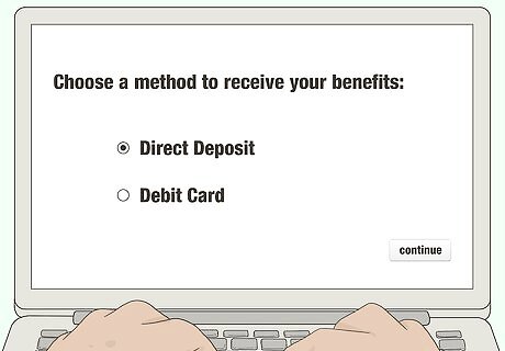 Choose to receive your benefits through direct deposit or debit card. From your online account, you can manage your unemployment benefits and how you will receive them. If you have a US bank account, having your benefits direct-deposited there is typically the easiest way to ensure you get your benefits quickly. To set up direct deposit, go to your online account and provide your bank's routing number and your bank account number. You will need to specify whether it is a checking or savings account. If you don't have a US bank account, you can have a debit card sent to your address. Your benefits will be loaded onto the card each week. The card is issued by Bank of America, so you can download the Bank of America app to manage your account. However, getting this debit card does not mean that you have a bank account with Bank of America.