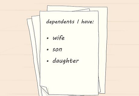 Determine how many dependents you have. The amount of benefits you receive also depends in part on how many benefits you claim. You cannot list yourself as a dependent. However, you can list any children you have, plus your spouse if they earned $120 less in wages than you did during the week before the date you filed your claim. If your spouse or another member of your household is currently receiving unemployment benefits, you can't claim any dependents that they're already claiming.