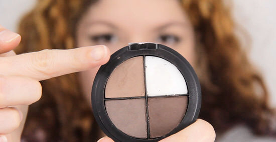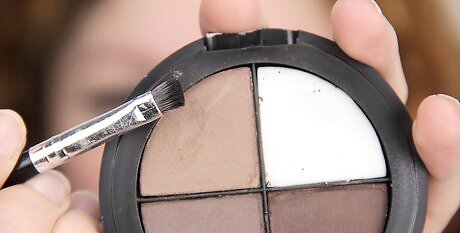 Opt for using eyeshadow as an alternative to powder, if desired. If you already have an eyeshadow that's close to your brow color, you can use this just as you would a brow powder. Select a shadow with a matte finish and make sure the eyeshadow doesn't have sparkles in it to avoid glittery eyebrows. For example, super light eyebrows can be filled in with a light tan or chestnut colored eyeshadow.