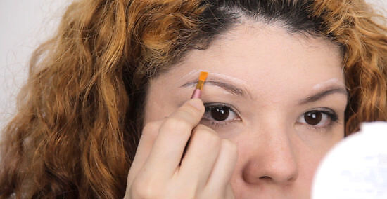 Set your brows using a clear brow gel. Lightly brush the clear brow gel, or clear mascara, onto your eyebrows. This will keep your eyebrows in place and help set the makeup, preventing the pencil liner, powder, or other cosmetics from rubbing off throughout the day. You may need to experiment with how much gel you use to avoid having shiny eyebrows from excess product. Swipe the gel or mascara wand over your eyebrows in a direction away from your face, moving with the natural movement of your eyebrow hairs.