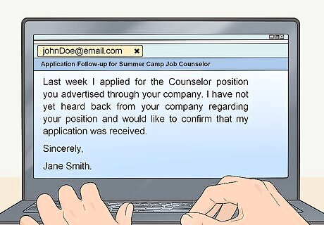 Send a follow-up email in 1 week. If you don’t hear back from the camp within a week, consider sending a follow-up email about your job application. Since most summer camp jobs are seasonal, it is better to be proactive and make the most of your time during your job search.