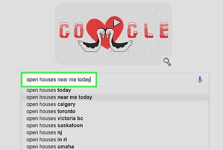 Do an online search for open houses near you. Using search engines is one of the easiest ways to find an open house. Just type in “open houses near…” with your designated search location, and open houses should start popping up in the results.