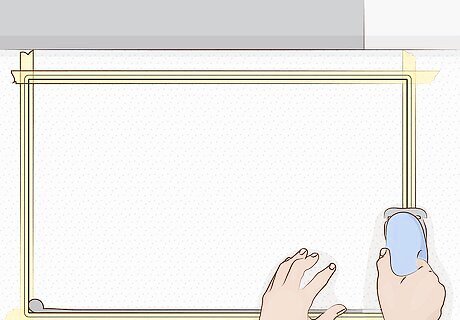 Tape over the measurements for visibility while cutting. Place some masking tape over each cutting line. Dark lines don’t show up well on dark worktops, and you’ll also be wearing safety goggles while the saw kicks up sawdust, so the yellow helps you stay on track. The masking tape can be removed when you finish the cuts.