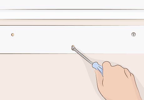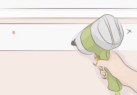 Drill 3 holes in each support. It helps to use a clamp to hold the worktop in place as you drill. Reach below the worktop to find the wooden supports. Place a hole at either end of the support, then drill the third one in the middle. Do this with both supports, lining up the holes as best you can. If your worktop has cabinets, also drill the supports in each one. That’s 3 holes per support or 6 total per section. Your worktop kit may come with brackets to install instead.