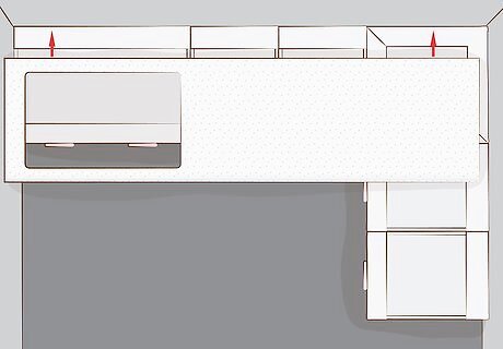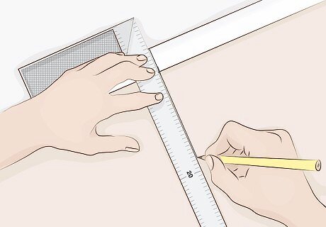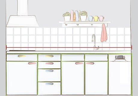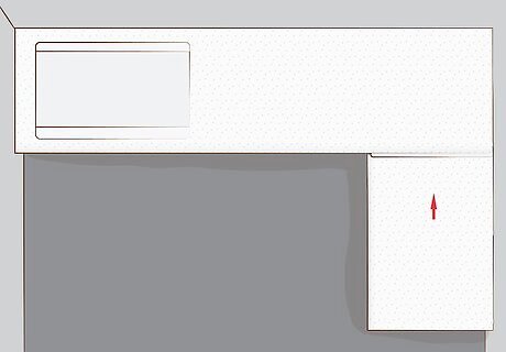 Draw the measurements on the worktops. Trace the dimensions you measured directly onto the worktop slabs. No matter what material you choose for your worktops, you can order them pre-cut. If you got pre-cut material, you will only need to do this if the worktops are too big or need to be divided. Worktop material can be wood, laminate, granite, or another material.
