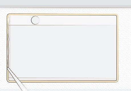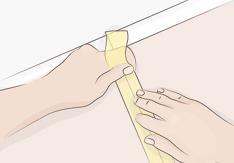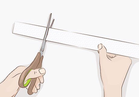 Cut laminate strips to size. These strips will be included with the countertop. Mark out how long you need them to be, then use scissors to trim off the excess material. You may also need to cut a little off the top and bottom to make the strip fit perfectly on the worktop’s edge. You’ll need 1 strip for every cut that’s still exposed. For one worktop or connected worktops, that’s 2 total.
