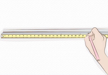 Mark the worktop’s width on the joining strip. Roll out the tape measure again if you threw away the measurements from earlier. The aluminum strip is meant to go on the edge of a worktop piece that will touch another piece. Trace the measurement on the strip so you can cut the strip to size.