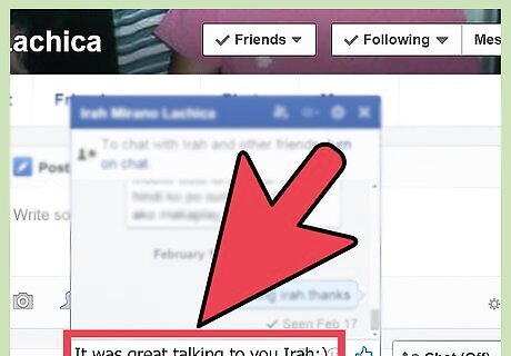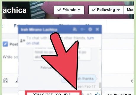 When using messenger, type how you would speak. When using social media, many people take a much more formal tone, which is not the best way to flirt. Before sending a message, read it out loud and make a mental note of whether or not it sounds too formal. It can be hard to convey tone through messages, so use positive words like "awesome" and add exclamation points to let her know you're excited.