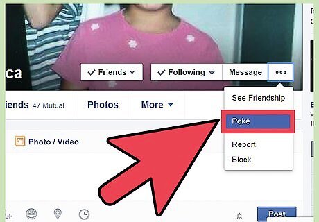 Poke her. “Poking” is a playful way to get a girl’s attention and let her know that you are thinking about her. What may begin as a playful Facebook poke may lead to something more intimate.