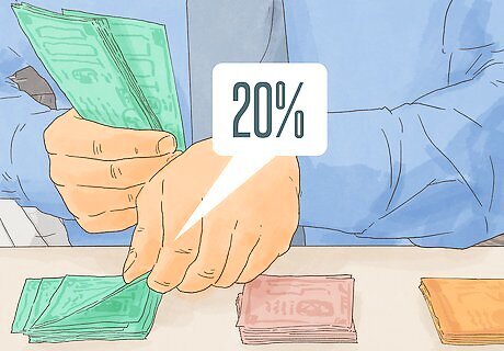 Save 20% of your income each payday. Each time you get paid (whether this is weekly, bi-weekly, or monthly) immediately transfer 20% to your savings account. Another way to say this is to always “pay yourself first.” Then you can spend the remaining 80% somewhat freely. Consider setting up an automatic withdrawal from your checking account to your savings account that occurs 1-3 days after your receive your paycheck. Contact your bank to set this up.